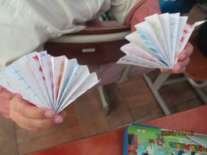 2年生の国語科で、「紙コップ花火の作り方」の学習をしました。今日の学習では、教科書を読み取り、書かれている説明に従って模様の書いた紙を折ったり、割りばしにボンドで付けたりする作業をしました。