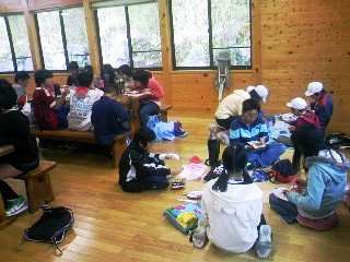 自然林に到着後,まずは,研修室の中で昼食をとりました。朝が早かったせいで,みんなとてもおなかがすいており,お弁当がとてもおいしかったです。
