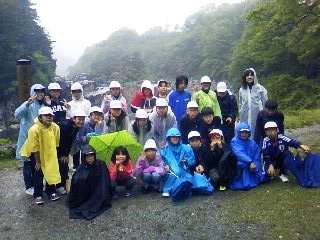 3時過ぎ,赤沢自然林を後にして,今日の宿泊地である寝覚の床へ向かいました。寝覚めの床に着いても,降り続く雨。本当なら,寝覚めの床の大きな石の上まで下りたり,その先の浦島堂まで行くことができるのですが,今日は,残念ながら危険なために,そこまで行くことができませんでした。