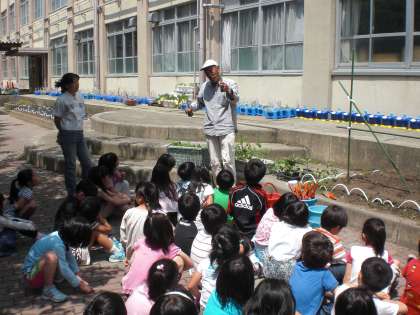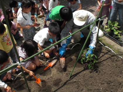学校運営協議会の理事でお世話になっている土橋さんが,今年も野菜博士として子どもたちの前に登場して下さいました。さすが野菜博士,子どもたちに野菜の苗の植え方を教えていただきました。今年もどうぞよろしくお願いします。