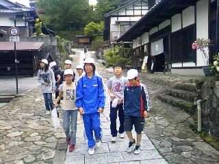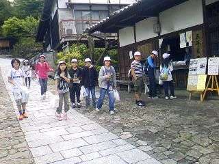 妻籠宿からバスに乗って,次は,馬籠宿に行きました。こちらも,妻籠宿と同じ昔の宿場町ですが,ここは岐阜県になります。綺麗に整備された石畳の坂の両側に,たくさんのお店が並んでいます。子どもたちは,宿場の街並を楽しむというよりも,お土産を買うことに必死なようです。