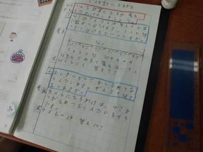 問題文を読み,どのような計算になるのかを式や図,言葉で説明したり,話し合ったりします。