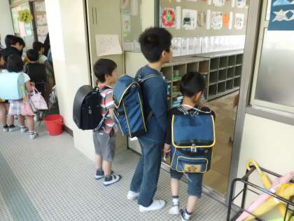 今年,第1回目の町別児童集会です。1年生は町別の教室が分かりません。そこで,6年生が1年生を迎えに行き,教室まで案内します。やさしいお兄さん,お姉さんぶりを発揮しています。