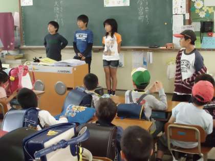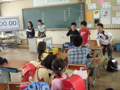 各町別の教室では,6年生の町班長や副班長を中心に話し合いが進められています。今回の第1のねらいは,通学路の安全です。痛ましい交通事故をふまえ,安全な登下校について話し合われています。