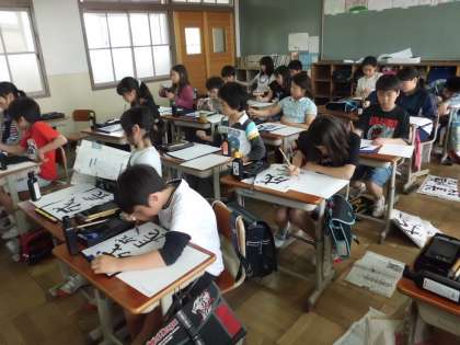 毛筆で「成長」と書いています。5年生にもなると,毛筆も慣れたものです。成長という言葉のように,しっかり自分ををみつめ成長してほしいですね。
