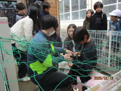 待鳳校では、ウサギを一羽飼育しています。名前をビターといい、とてもかわいいウサギです。今週、そのビターと子どもたちが触れ合う体験をしました。中間休みに、飼育小屋に集まってかわるがわる触れ合う体験をしました。