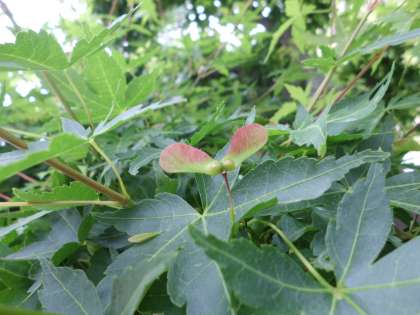 先日,モミジの花を紹介しましたが,実ができてきました。熟すとヘリコプターのように回りながら落ちてきて,発芽してきます。