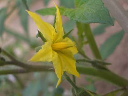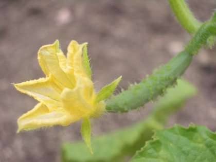 2年生が学校運営協議会の土橋さんと一緒に植えた夏野菜の花が咲いています。キュウリ・トマト・ナスビです。キュウリはかわいい実ができています。