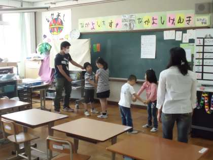 お家の人の前で,楽しく歌って踊って,すてきな音を奏でます。