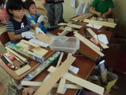 木を切ったり,釘で気をひっつけたりしながら楽しい作品を作ります。どんな作品が仕上がるかな?