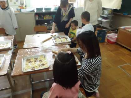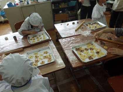 仲よし学級の教室からいい匂いがしてきました。クッキーの形も出来上がり,焼いて仕上げています。