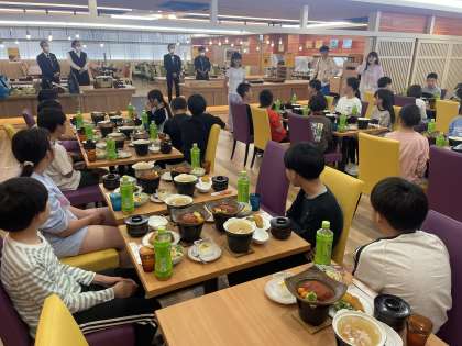 お待ちかねの夕食です。とっても豪華な料理に子どもたちも大喜び。