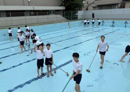 6年生は、もうすぐ始まる水泳学習に向けて、5時間目にプール清掃をしました。