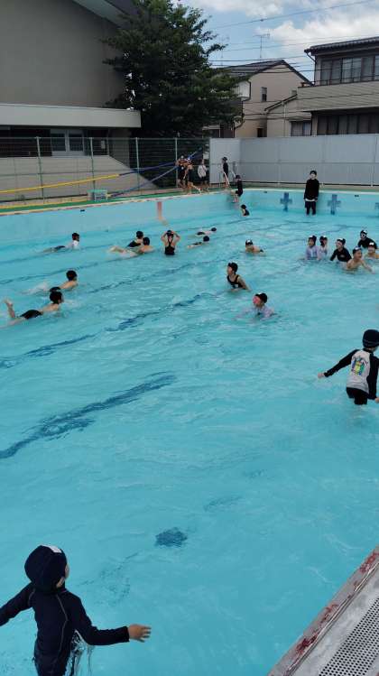 1年生に引き続き3・4校時に2年生が、プールに入りました。久しぶりなのでプールの使い方を復習しながら安全に気を付けて活動に取り組みました。今日は、水の中でまねっこ遊びをして楽しんでいました。