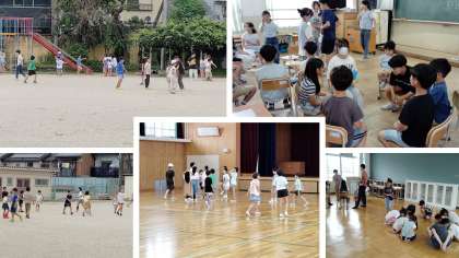 1〜6年生の子どもたちでたてわりのグループを組み、そのグループ内で高学年を中心に遊びを考えて一緒に遊びます。