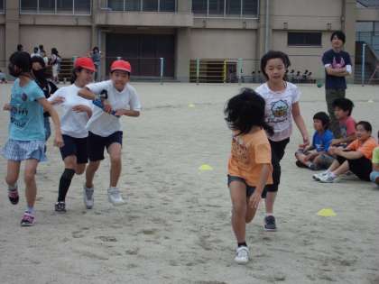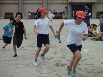 今日は6年生のリレー大会です。抜きつ抜かれつの大接戦。さすが6年生,迫力が違いますね。