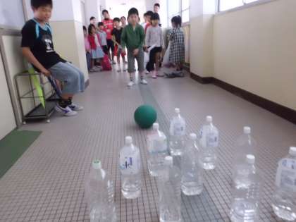 南校舎では,ペットボトルボーリング・ジェスチャーポイントゲーム・ころがしスコアゲームが行われています。