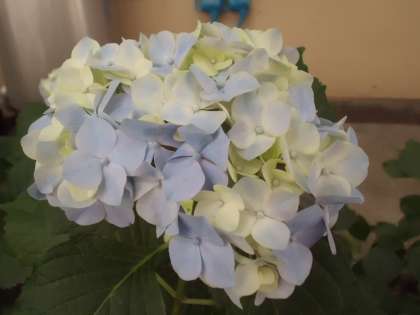中庭のアジサイも少しずつ色づいてきました。