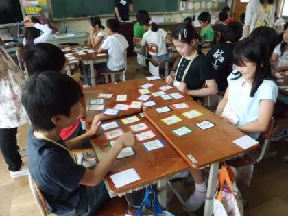 各教室では,学生が考えた指導案で学習が進められています。目標は同じなのですが,それぞれに方法が違います。ゲームなどを取り入れ楽しく学習が進んでいます。