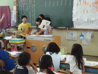 今日は,先日行った「まちたんけん」でわかったことを発表します。それぞれグループによって行き先が違います。これからの生活科で,もっと詳しく調べていくので,まとめたり,友だちの発表を聞いたりするのも大切です。