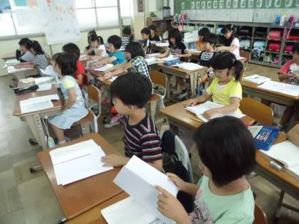 2年生が大好きな教材,スイミーの学習が始まりました。挿絵を並び替えながら,あらすじをまとめ,スイミーを中心に登場人物の会話や行動から,心に残ったことを書いていきます。
