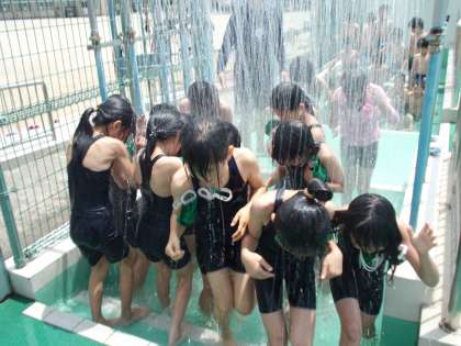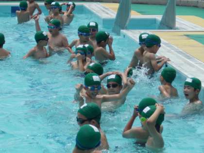 今年初めてのプールです。シャワーを浴びる時から大歓声。子どもたちはとても楽しみなのですね。でも,水泳学習,楽しんでるだけではいけません。しっかり,泳げるように頑張ろうね。