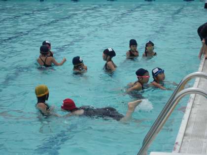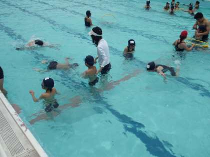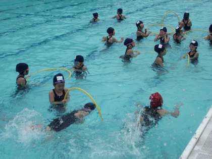 2年生同様,今日から水泳学習,水位は深めです。でも,元気いっぱいの1年生,ロープくぐりやリング拾いをがんばっています。深い水位にも早くなれそうです。