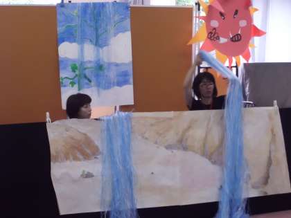 今日は,たのしいポンポンデー。図書ボランティア ポンポンクラブのみなさんが,朝から準備やペープサートの練習をしています。ありがとうございます。みんな,楽しみにしています。