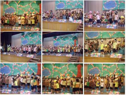 今日は、入学してから初めての学習発表会の日でした。国語の勉強で学習した「はなのみち」のお話を、歌や踊りをまじえて、みんなで発表しました。おうちの方やお兄さん、お姉さん、たくさんの人が見ている前で発表するので、ちょっぴり緊張しましたが、一生懸命がんばって発表できました。