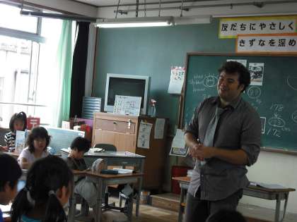 夏休み明けから,5・6年生の外国語(英語)活動に,新しいALTの先生が来られました。カナダから来来ているセべスチャン・ロシェリュー先生です。セブ先生と呼んでください。カナダのいろんな話が聞けるといいですね。