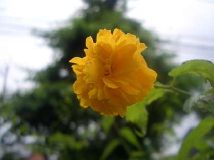 ふつうは晩春に咲くヤマブキ。グリーンベルトのヤマブキが一輪咲いています。なぜ,この時期に?