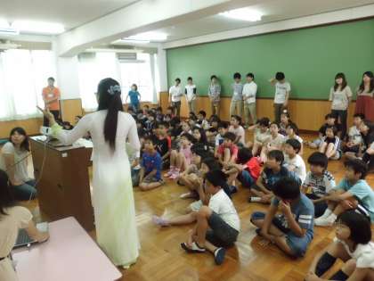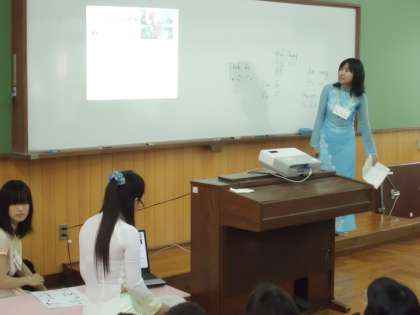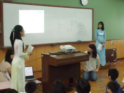 お二人から,ベトナムの言葉を教わったり,ベトナムの位置や気候,政治や文化の話を聞きました。初めて知ることが多く,みんなびっくりです。