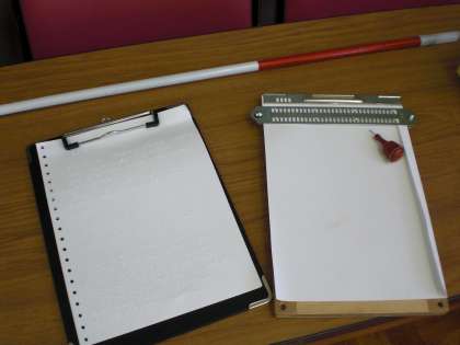 府立盲学校のお友達の自己紹介の中で,実際に使っている学習用品をいくつか見せていただきました。待鳳小のそれとはずいぶん違いますね。