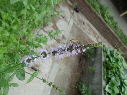ぺおあー民との花がずいぶん開いてきました。ちょうどミツバチが蜜を吸いに来ていました。