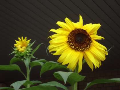 玄関前の花壇のヒマワリが咲きました。もう一つも咲きそうです。