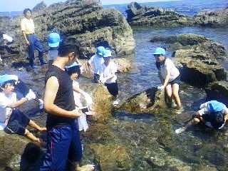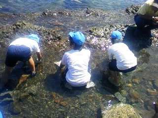 楽しく磯観察をしている子どもたちです。