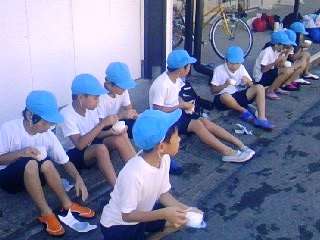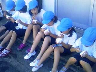 夏の太陽が照りつける浜でいっぱい活動した子どもたち。みさきの家に戻って、おやつにアイスクリームをいただき、子どもたちは大喜びでした。