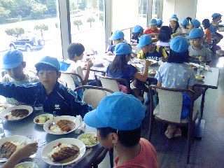 館内を見学した後は、レストランで昼食です。定番のカツカレーとサラダをいただきました。この後、バスに乗って京都へ向かう予定です。