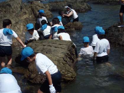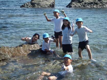 みさきの家で一番の楽しみは磯観察。大潮でなく中潮だったのが残念でしたが,それでもたくさんの海の生き物を見つけました。中にはどっぷりと海に使っている子も多くいました。