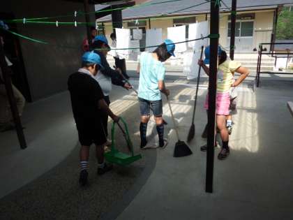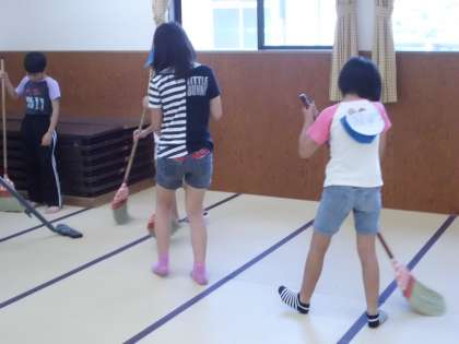 「来た時よりも美しく」。退所式の前に全員で使った場所の掃除をしています。この精神を忘れないでほしいですね。