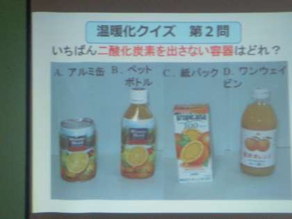 ・インタビューを交えた地球温暖化に関するクイズ等を通して,地球温暖化防止の大切さや家庭でのエコライフの実践方法について学習