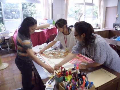 8月24・25日に京都で「日本PTA全国大会」が開かれます。その時に掲示される「壁新聞」を,PTA教養委員会の皆さんが作っています。さて,どんな壁新聞が出来上がるでしょう。とても楽しみですね。(昨年まではPTAフェスティバルで掲示されていました。)