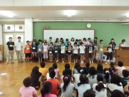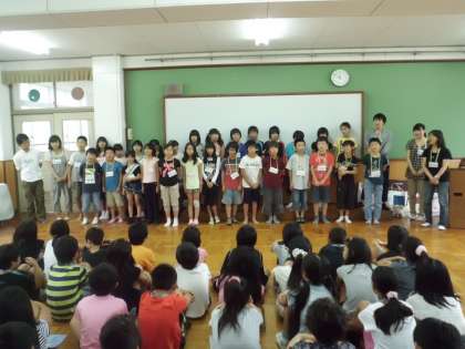 次は,舞開授業の最後に練習をしていた歌の発表です。1組:“Country road”,2組:“It’s a small world”,3組:“Puff”です。みんな練習の成果がよく表れて,とても上手に歌えました。