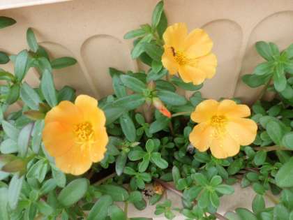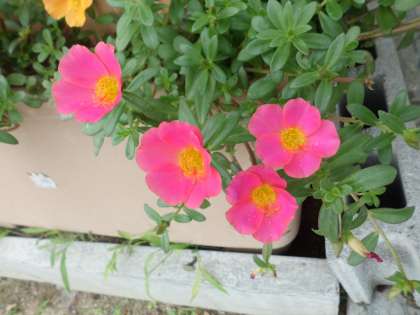緑のカーテンは地面からの熱を考えて,プランターを2段にしていますが,今年も下の段のプランターにポーチュラカを植えました。これからどんどんと咲き始め,緑のカーテンのアクセサリーになりますね。