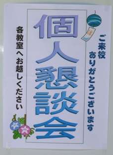 今日、ようやく梅雨が明けました。本格的な夏のシーズンを向かえ、いよいよ来週の水曜日から夏休みに入ります。そこで、今日から個人懇談会が始まりました。前期前半の子どもたちの様子や夏休みの過ごし方などについて、保護者の方と話し合いました。