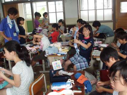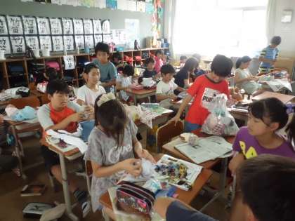 やわらかなぬのでつくられた手ぶくろ,くつ下,長そでシャツ……。中身をつめて,しばって,お気に入りの形をつくっています。どんな形が生まれてくるかな?