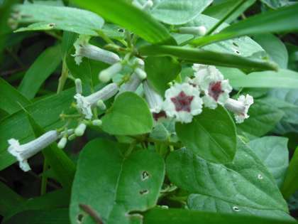 ヘクソカズラの花が咲いています。なんともものすごい名前を頂いたものですね。でも,臭いをかげば納得せざるを得ないようです。。「ヘクソカズラ(屁糞葛)」という名前があまりにも気の毒だということで,別名のサオトメバナ(早乙女花)を普及させたいとの声を聞いたこともありますが,ほとんど普及はしていません。きれいな名前と言うだけでは一般的にはなりにくいのでしょう。もう一つの別名である「ヤイトバナ(灸花)」は,花の中心部の赤いところを灸(やいと:お灸のこと)をすえた跡に見立てたものとか,あるいはこの花を逆さにして人の肌に伏せると灸をすえているように見えることから付けられたとか言われています。