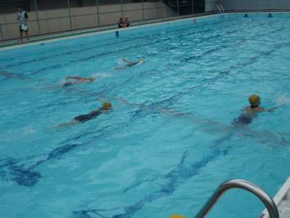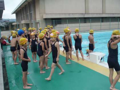 2年生が検定を行っています。1年生の時よりも級をあげようと頑張っています。夏休みのプール指導でも,検定があります。今日,思うような結果が出せなかった人は,夏休みに再チャレンジですね。