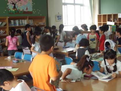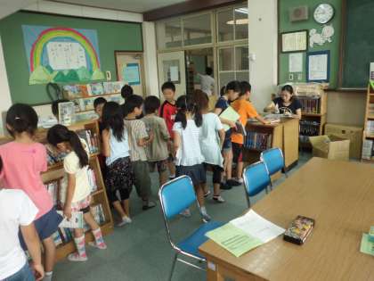 明日から夏休み。今日は夏休みに読む本を借りています。夏休み中は予定表にもあるように,サマースクールとして図書室が開館されます。その時にも交換ができます。時間がいっぱいある夏休み,たくさんの本を読んでほしいですね。