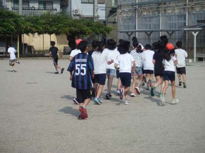 学習相談日の前に,陸上部に6年生が加わって,夏休み初日から早朝練習が始まりました。みんなやる気満々です。